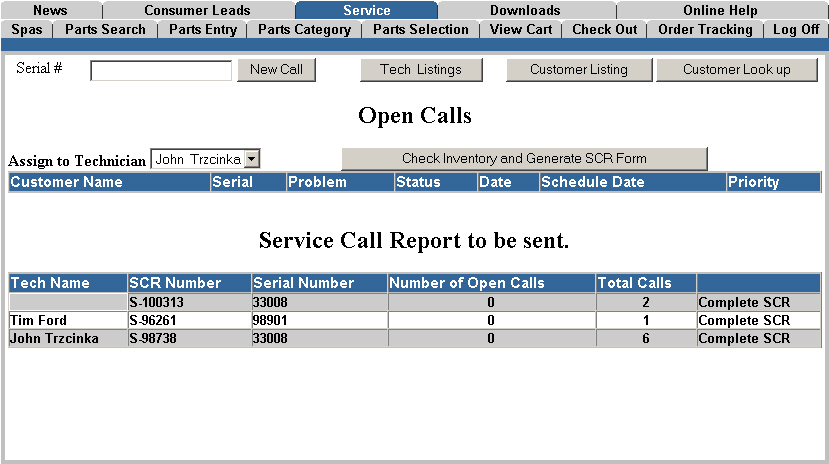 Dealer Customer Service Service This special section provides the ability to manage customer service calls. Service Call Management is a special feature available only to participating dealers and their authorized associates. This section allows you to create new service calls, manage service technicians, find customers and check inventory.