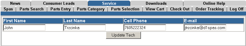 Dealer Customer Service Service - Tech Listings - Update Information Simply enter the correct information in the appropriate field and click on the "Update Tech" button. Each employee who is authorized to use the dealer's B2B website can be assigned/reassigned access to different sections of the website, such as Service, Parts Orders, or Spa Orders by the Dealer who has Administrative privileges.